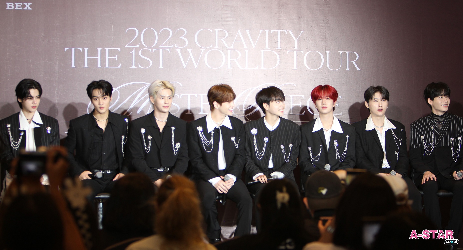 ส่วนทำไมคอนเซ็ปต์งานครั้งนี้ต้องเป็นคำว่า MASTERPIECE ฮยองจุน เฉลยว่า อัลบั้มที่แล้วของพวกเขาใช้ชื่อว่า MASTER : PIECE ซึ่งมีความหมายที่ดีมากๆ หมายถึง 'ผลงานชิ้นเอก' อะไรประมาณนั้น และในเวิลด์ทัวร์คอนเสิร์ตของพวกเขาก็จะโชว์ความสมบูรณ์แบบและความมาสเตอร์พีซของพวกเขาด้วย แถมยังบอกว่า การที่คราวิตี้และลอบิตี้ได้เจอกันก็คือมาสเตอร์พีซด้วยเหมือนกัน ส่วน CRAVITY เองคิดว่าอะไรเป็น MASTERPIECE ของพวกเขานั้น หนุ่มวอนจินเผยว่า การที่เมมเบอร์ทุกคนได้อยู่ด้วยกันแบบนี้ก็ถือเป็นมาสเตอร์พีซมากๆ แล้ว ส่วนคอนเสิร์ตในวันเสาร์ก็แอบกระซิบนิดนึงว่า ทุกคนก็จะได้เห็นมาสเตอร์พีซของพวกเขา โดยในส่วนของวีซีอาร์ก่อนที่จะอังกอร์ จะเห็นว่ามีจิ๊กซอว์ชิ้นนึงว่างอยู่ แล้วจะมี 1 ชิ้นเข้ามาประกบ แล้วทุกอย่างก็จะสมบูรณ์แบบสำหรับพวกเขา และจิ๊กซอว์ชิ้นนั้นสำหรับพวกเขาก็คือลอบิตี้ที่ทำให้พวกเขาสมบูรณ์และเป็นมาสเตอร์พีซได้ด้วย ด้านหนุ่มแทยอง แอบกระซิบว่า LUVITY (ลอบิตี้) ชาวไทยจะมีโอกาสได้เห็นโชว์พิเศษบนเวทีในวันเสาร์นี้ "ในระหว่างที่พวกเราเดินสายเวิลด์ทัวร์คอนเสิร์ต MASTERPIECE รอบนี้ มันก็จะมีคัมแบ็คของพวกเราด้วย พวกเราก็เลยได้เตรียมเพลงใหม่ซึ่งเป็นเพอร์ฟอร์แมนซ์ที่พวกเราเตรียมมาให้ทุกคนได้ดูกันด้วย และจะเป็นครั้งแรกที่แฟนๆ ชาวไทยได้ดูเพลงใหม่ของพวกเรากันสดๆ บนเวทีด้วยครับ" และสำหรับการคัมแบ็คครั้งล่าสุดเมื่อวันที่ 11 กันยายนนั้น หนุ่มวอนจินเผยว่าเป็นมินิอัลบั้มที่ 6 ของพวกเขาที่ใช้ชื่อว่า Sun Seeker ซึ่งจะมีความมุ่งมั่นและเอเนอร์จี้ของหนุ่มๆ อยู่ในนั้น คอนเฟิร์มว่าทุกคนจะต้องชอบ