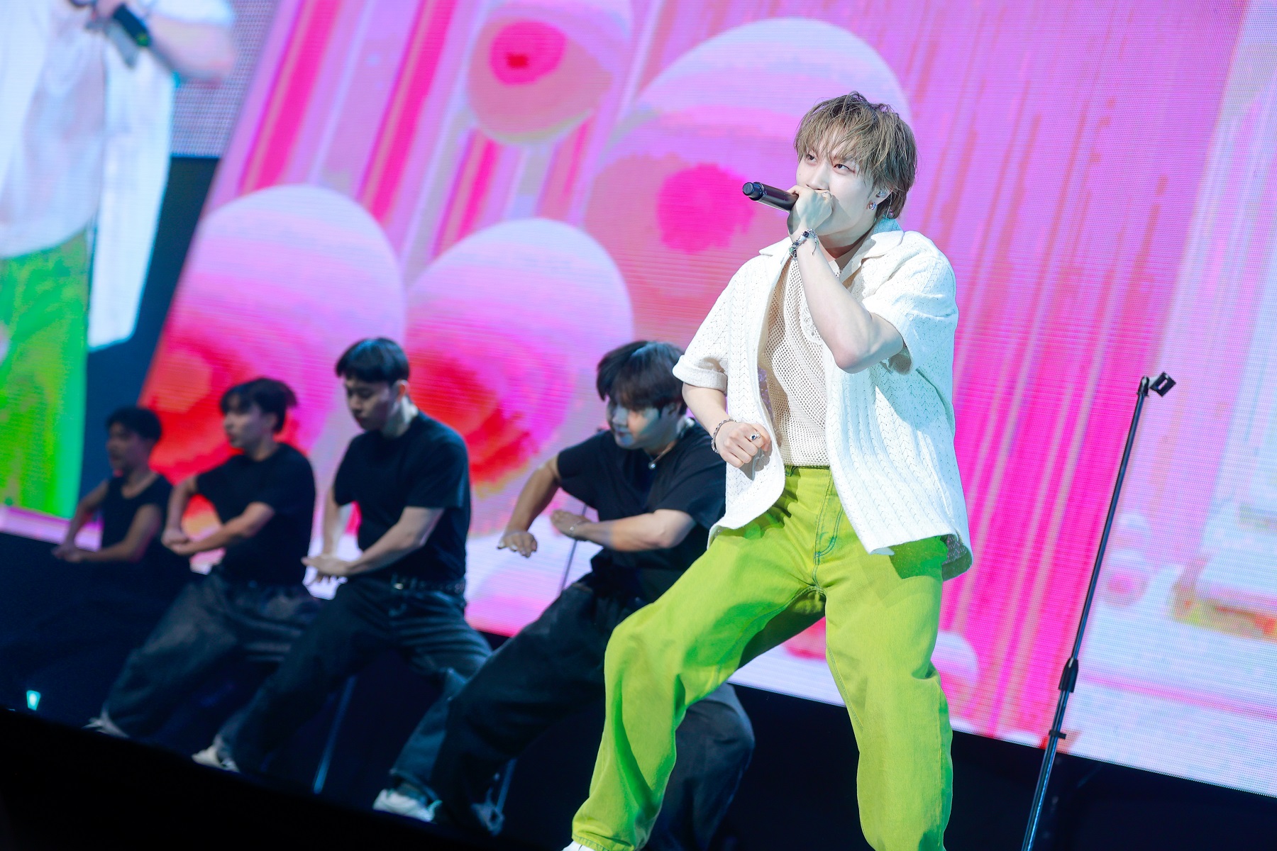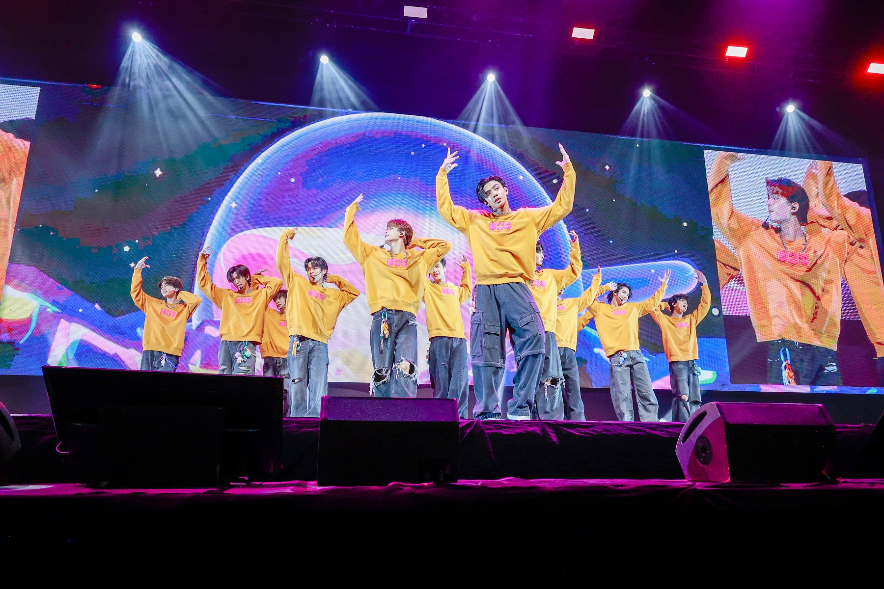 โดยแม้จะเพิ่งเดบิวต์แต่ก็ต้องถือว่าสเตจนี้พวกเขาเอาอยู่ เพราะโชว์เพอร์ฟอร์มสุดเจ๋ง ร้อง เต้น แร็พ ได้อย่างยอดเยี่ยม แถมยังได้โชว์เพลงของพี่สาวของพวกเขาก็คือ 5 สาว MXFRUIT (มิกซ์ฟรุต) ในเพลง ‘นี่นะคะ (I’m Here!) และต่อด้วย ‘FORGET ME NOT’ ช่วงท้ายพวกเขากล่าวขอบคุณผู้จัดงาน MERRY POP FESTA 2023 ที่ให้โอกาสพวกเขาได้มาเก็บเกี่ยวประสบการณ์ และที่สำคัญเลยหนุ่มๆ ยังฝากเป็นกำลังใจให้รุ่นพี่ศิลปินที่กำลังจะมาเฉิดฉายบนเวทีแห่งนี้ โดยที่หนุ่มจินอุคยังเป็นตัวแทนเจ้าบ้าน ส่งแมสเสจถึงศิลปินรุ่นพี่อย่าง “บัง เยดัม” และ “ฮัน ซึงอู” ที่จะขึ้นเวทีถัดไปว่าอยากให้มีประสบการณ์ที่ดีจากการที่ได้โชว์ที่ไทยและอยากให้เก็บเกี่ยวความสุขไปเยอะๆ อยากให้กินของอร่อยเยอะๆ เพราะว่าอาหารไทยอร่อยมาก และท้ายสุด 12 หนุ่มยังได้ฝากซิงเกิ้ลแรกและเอ็มวีของพวกเขา ก่อนปิดท้ายด้วยเพลงเดบิวต์อย่าง ‘Because of You, I shine’ ที่สาดความสดใส ความน่ารักขยี้ใจแฟนๆ ในฮอลล์ให้ฟินหนักมาก ตอกย้ำความฮอตศิลปินหน้าใหม่ที่มาแรงที่สุดในตอนนี้
