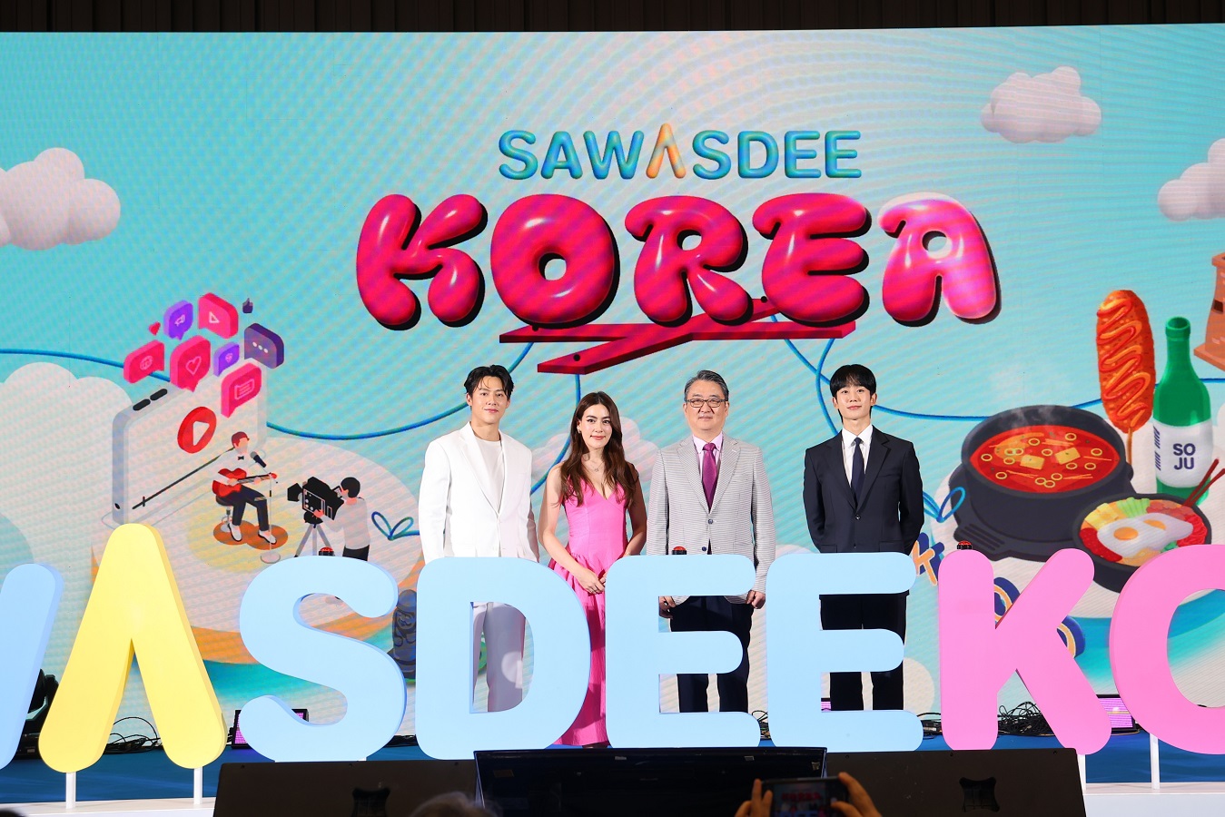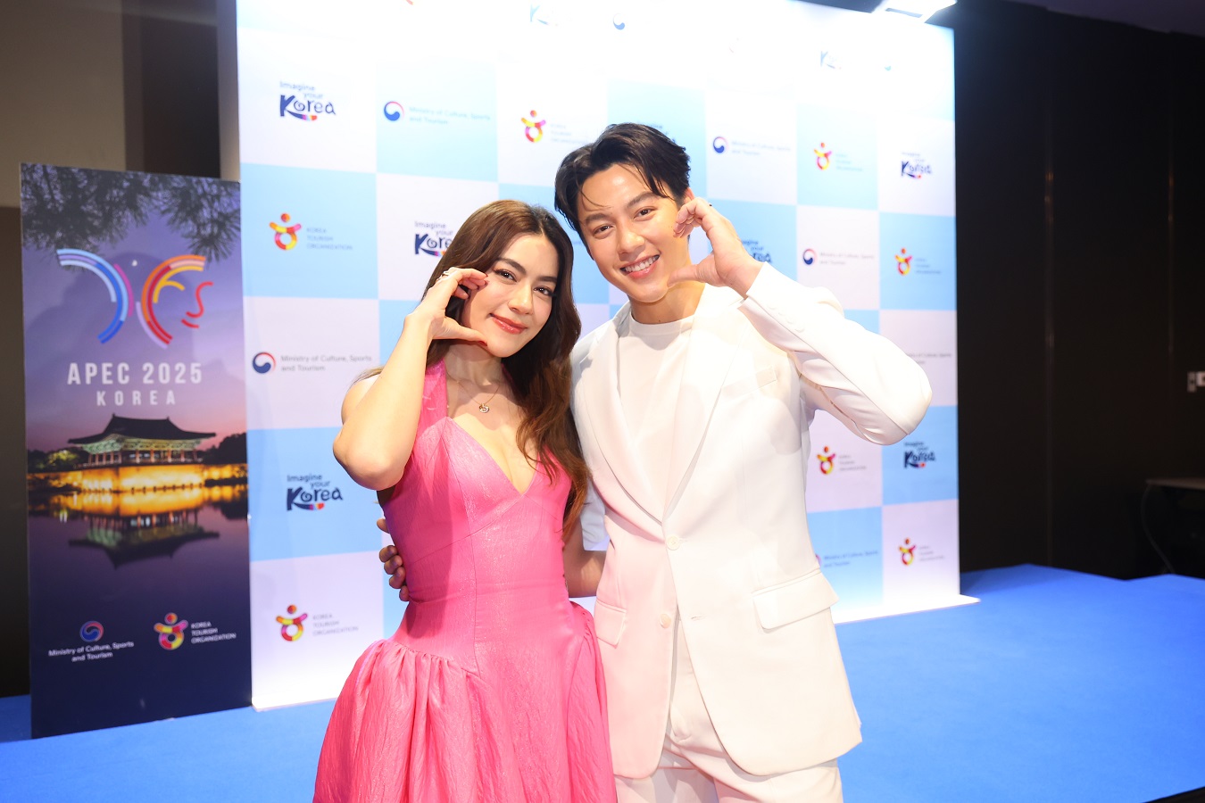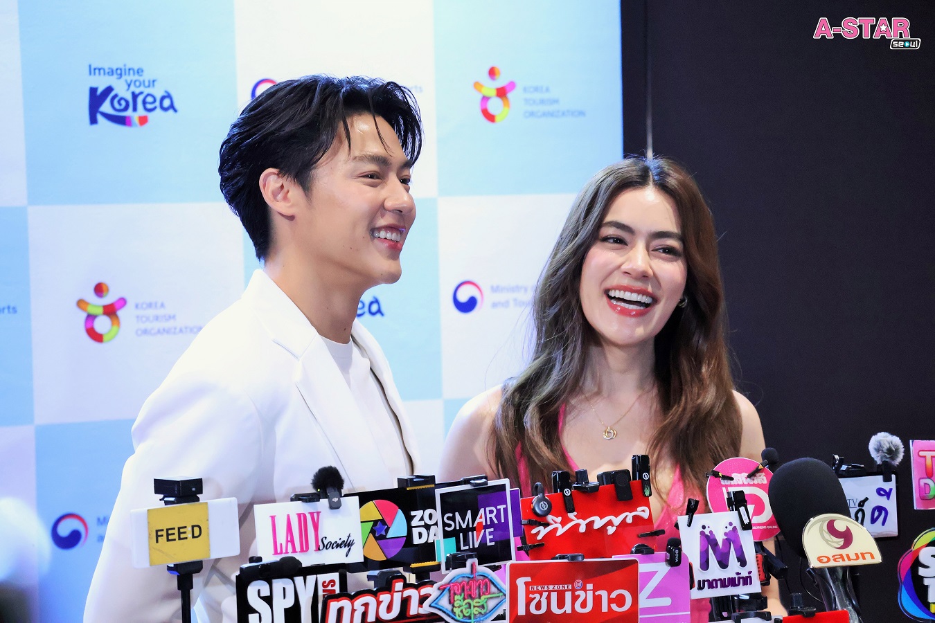 ด้าน 'หมาก& คิม' (หมาก-ปริญ สุภารัตน์ & คิมเบอร์ลี่ แอน โวลเทมัส) คู่รักซุป'ตาร์ในฐานะทูตประชาสัมพันธ์กิตติมศักดิ์ ได้เล่าประสบการณ์เที่ยวและเสน่ห์ของเกาหลีว่าไปเกาหลีมาหลายครั้งแล้วแต่ครั้งนี้จะพิเศษกว่าทุกครั้งก็คือได้ดื่มด่ำความเป็น traditional ของที่นั่น ได้ไปในที่ๆ ถ้าไปเที่ยวกันเองอาจจะไม่ได้ไป เหมือนไปเปิด map ของตัวเองอีกที มีบางที่ๆ เพิ่งเคยได้ไปครั้งแรก และในฐานะทูตการท่องเที่ยวเกาหลีทั้งสองก็อยากบอกว่า เกาหลีมีอะไรให้เที่ยวเยอะมากๆ ที่เราอาจจะยังคิดไม่ถึง ความเป็นธรรมชาติของเขาก็สวยมากๆ อย่างเกาะเชจูที่ไปมาก็สวยสุดๆ มีทั้งคาเฟ่จึ้งๆ และอาหารอร่อยมากกกก เกาหลีไม่ได้ดังแค่ K-POP ยังมีวัฒนธรรม มีอาหาร มีสถานที่ท่องเที่ยวที่เราสามารถไปได้ทุกฤดู โดยที่ทั้งสองไปเที่ยวหน้าร้อน ก็ได้อีกบรรยากาศ สนุกสดชื่นไปอีกแบบ เมื่อถามว่านอกจากเกาะเชจูแล้วมีสถานที่ไหนที่อยากแนะนำอีก ทั้งสองบอกว่าอยากไปหลายที่มาก แต่ที่ไปแล้วรู้สึกประทับใจเป็นพิเศษก็น่าจะเป็นวัดแห่งหนึ่ง ไปแล้วรู้สึกสงบมาก เป็นวัดที่ไม่ได้ห่างไกลจากในเมืองเท่าไหร่แต่ว่ามีความเป็นธรรมชาติ รู้สึกว่าจะอยู่ในอุทยานแห่งชาติ นอกจากที่ท่องเที่ยวแล้วอาหารเมนูที่อยากแนะนำมีอะไรอีก หนุ่มหมากหัวเราะร่วนก่อนบอกว่ากินทุกสิ่งเลย ประทับใจหลายอย่าง มื้อแรกก็ไปกินหมูย่าง, หมูสามชั้น เติมคอลลาเจนกัน แล้วซีฟู้ดที่เกาะเชจูก็อร่อย นอกจากนี้ก็ได้ไปตลาดปลา ตลาดสด เดินเล่นแล้วกินซีฟู้ดสดๆ อีกด้วย ที่ๆ พูดมาหลายคนอาจจะเคยไปมาแล้ว แต่อยากให้ลองไปในฤดูอื่นบ้าง จะได้อะไรที่ไม่เหมือนกัน ส่วนประสบการณ์การไปท่องเที่ยวครั้งนี้ที่จดจำมาถึงทุกวันนี้ หนุ่มหมากบอกว่าได้ไปวัดๆ นึง แต่ต้องขอโทษที่จำชื่อวัดไม่ได้ เป็นวัดที่อยู่ในอุทยานแห่งชาติ แล้วจะมีแม่ชีมาสวดมนต์ให้ด้วย ซึ่งรู้สึกดีมากๆ รู้สึกเป็นพลังงานที่บวกมากๆ และสุดท้าย 'หมาก& คิม' ยังชวนแฟนๆ ชาวไทยให้ไปท่องเที่ยวเกาหลีว่าไม่จำเป็นต้องไปหน้าหนาวอย่างเดียว เกาหลีมีเสน่ห์ของตัวเองในทุกๆ ฤดู บางทีเราอาจจะต้องไปเที่ยวแบบเปิด map ใหม่ๆ แล้วตอนนี้การเดินทางมันก็สะดวกสบายขึ้น ที่พักก็ไม่ได้แพงมากหรือไปยากแบบเมื่อก่อนแล้ว ไปได้ง่ายๆ