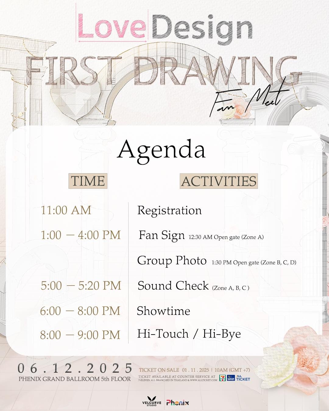 ไม่ได้มาเล่นๆ ก็ว่าได้ บริษัท เวลเคิร์ฟ สตูดิโอ จำกัด (VelCurve Studio) เชิญชวนแฟนๆ ร่วมเป็นส่วนหนึ่งของงาน "LOVE DESIGN : FIRST DRAWING FAN MEETING" เตรียมตัวให้พร้อม! สัมผัสกับประสบการณ์ใหม่ๆ เหนือว่าทุกงานของ “Fanmeet” ที่ไม่ใช่แค่การพบปะกับนักแสดง แต่นี่คืองานโชว์คุณภาพระดับพรีเมียม! เพื่อแฟนตัวจริงกับนักแสดงคนโปรด ในวันเสาร์ที่ 6 ธันวาคม 2025 ณ ชั้น 5 ฟีนิกซ์แกรนด์บอลรูม