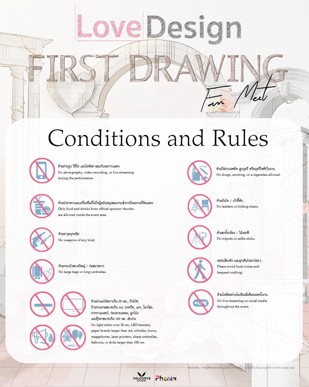 ซึ่งงาน "LOVE DESIGN : FIRST DRAWING FAN MEETING" ในครั้งนี้จะให้คำนิยามใหม่ว่าเป็น "Fan Mini Concert" ขนาดย่อม ก็ว่าได้ เพราะโชว์ที่จะได้ดู อัดแน่นด้วยคุณภาพ ความตั้งใจ จากเพลงที่เลือกโชว์ด้วยตัวศิลปินเอง การันตีความเป๊ะปัง พูดได้เลยว่ามีว๊าวแน่นนอน ร่วมสร้างโมเม้นท์ความประทับใจโชว์ของ 2 นักแสดงสุดฮอต เก้า สุภัสสรา และ เจนเย่ เมธิกา เฉพาะโชว์เน้นๆ กว่า 2 ชั่วโมง อัดคุณภาพแน่นๆ ไปเลย โอ้วว..นี่ยังไม่รวม Benefit อีกนะจ๊ะ