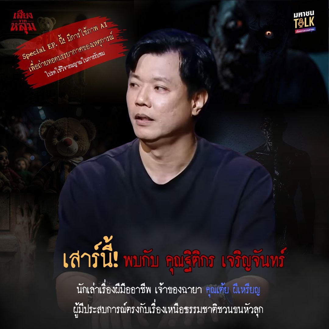 สัปดาห์นี้ ชอน-ชวิศการ วรโรจน์โยธิน พิธีกรประจำรายการพอดแคสต์ เสียงจากหลุม จากโปรเจกต์ “มหาชนTalk” พิเศษมาก ๆ เพราะจะพาคุณดื่มด่ำกับเรื่องเล่าจากแขกรับเชิญ พร้อมภาพ AI ถ่ายทอดเรื่องราวสิ่งลี้ลับให้เห็นภาพชัดเกินกว่าคำบรรยายจะเอื้อนเอ่ย ราวกับคุณได้ยืนอยู่ในเหตุการณ์นั้นจริงๆ