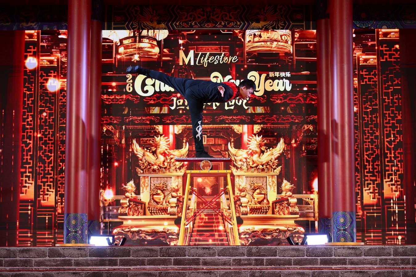 การฉลองเทศกาลตรุษจีนปีม้าไฟ เปิดฉากด้วยโชว์พิเศษ “THE AUSPICIOUS HORSE A YEAR OF GLORY” ถ่ายทอดพลังแห่งปีม้าไฟกับขบวน The Elite Warriors นำทัพมหาเฮง โดย 8 หนุ่มหล่อจาก Mister International Thailand พร้อมกองทัพมังกรและสิงโต เสริมความยิ่งใหญ่ด้วย World-Class Acrobatic Spectacle มหกรรมกายกรรมอิมพอร์ตระดับโลกจากคณะการแสดงนานาชาติที่เดินสายสร้างความประทับใจให้ผู้ชมมาแล้วทั่วโลก พร้อมโชว์สุดเอ็กคลูซีฟจากนักแสดงชื่อดัง นำโดย นานิ หิรัญกฤษฎิ์ และ เติ้ล–เฟิร์สวัน คู่จิ้นสุดฮอต ตลอดจนการแสดงชุด “Sky Lantern Wish” จาก BNK48