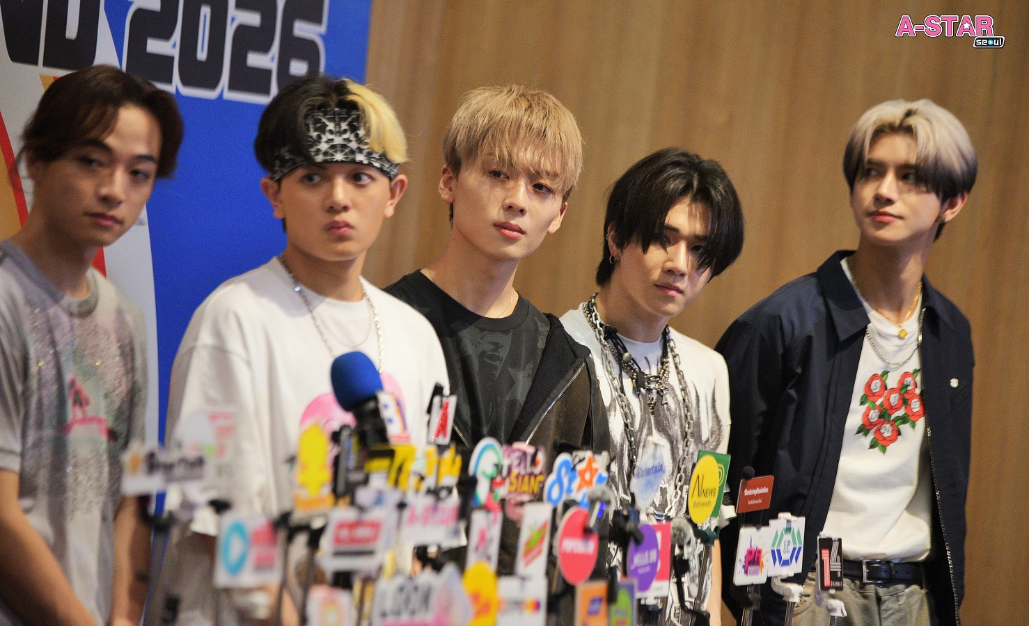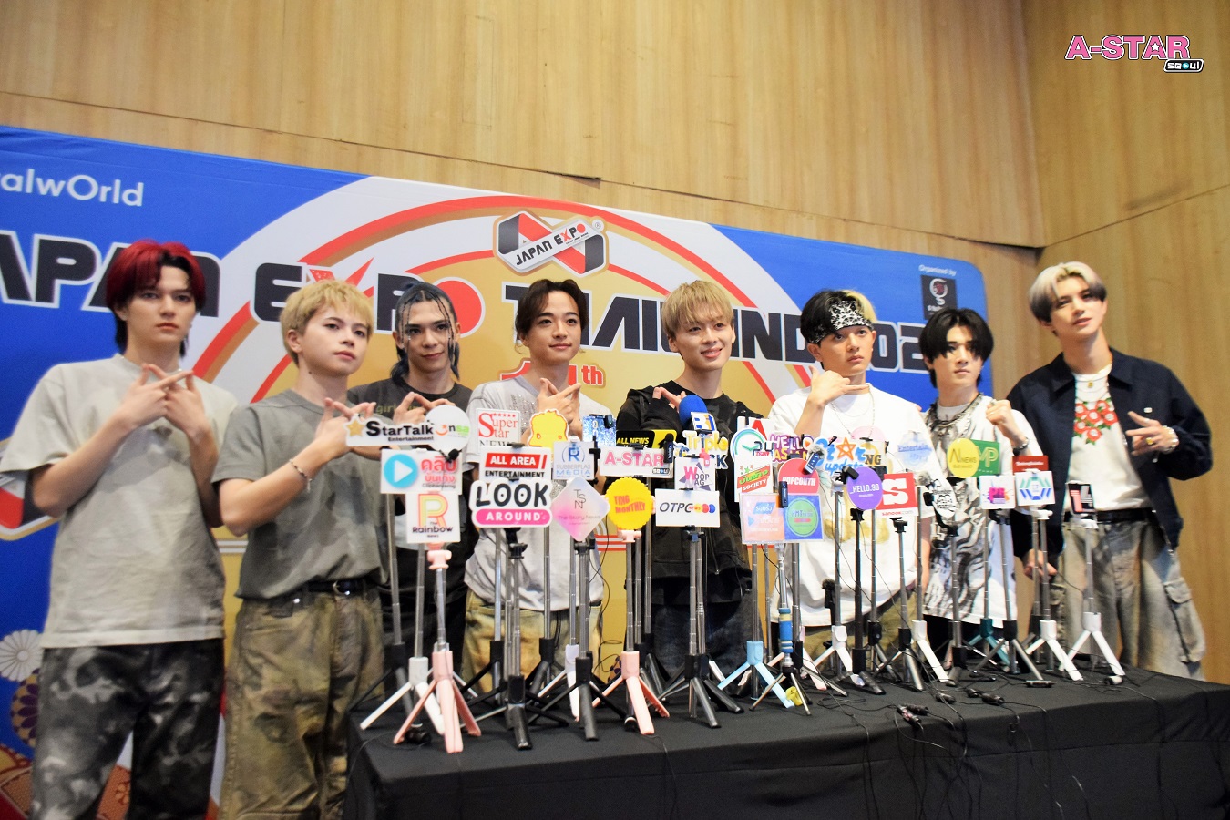 จากซ้าย ไป ขวา : REIA (เรอา), YUGA (ยูกะ), TAKERU (ทาเครุ), RYOTA (เรียวตะ), NEO (นีโอ), MIZUKI (มิซึกิ), SOUMA (โซมะ), TSUBASA (สึบาสะ)