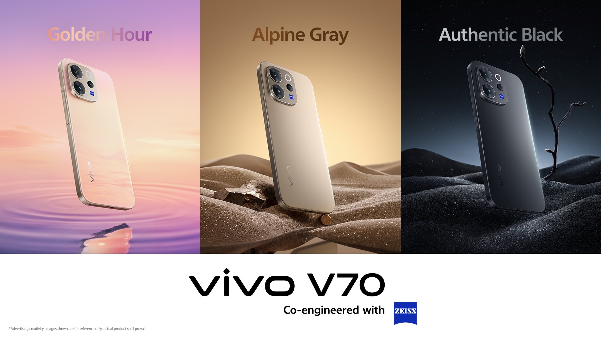 vivo V70 นำเสนอบนดีไซน์ใหม่สุดโฉบเฉี่ยว จับถือสะดวก และพรีเมียมมากยิ่งขึ้น โดยจะเปิดตัวใน 3 ตัวเลือกสีสันสุดพรีเมียม ได้แก่ สีทอง Golden Hour เปล่งประกายมีเสน่ห์เหมือนท้องฟ้ายามเย็น สี Alpine Gray โทนเทาเรียบเท่ ทันสมัย และสีดำ Authentic Black สุดคลาสสิกเหนือกาลเวลา ทำงานบนระบบปฏิบัติการใหม่แกะกล่องอย่าง OriginOS 6 พร้อมฮาร์ดแวร์ที่ลื่นไหลและตอบสนองฉับไว รองรับการใช้งานตลอดวันด้วย แบตเตอรี่ BlueVolt ความจุ 6500mAh พร้อมเทคโนโลยี 90W FlashCharge เพิ่มความมั่นใจในการใช้งานด้วยมาตรฐานทนน้ำทนฝุ่น IP68 & IP69
