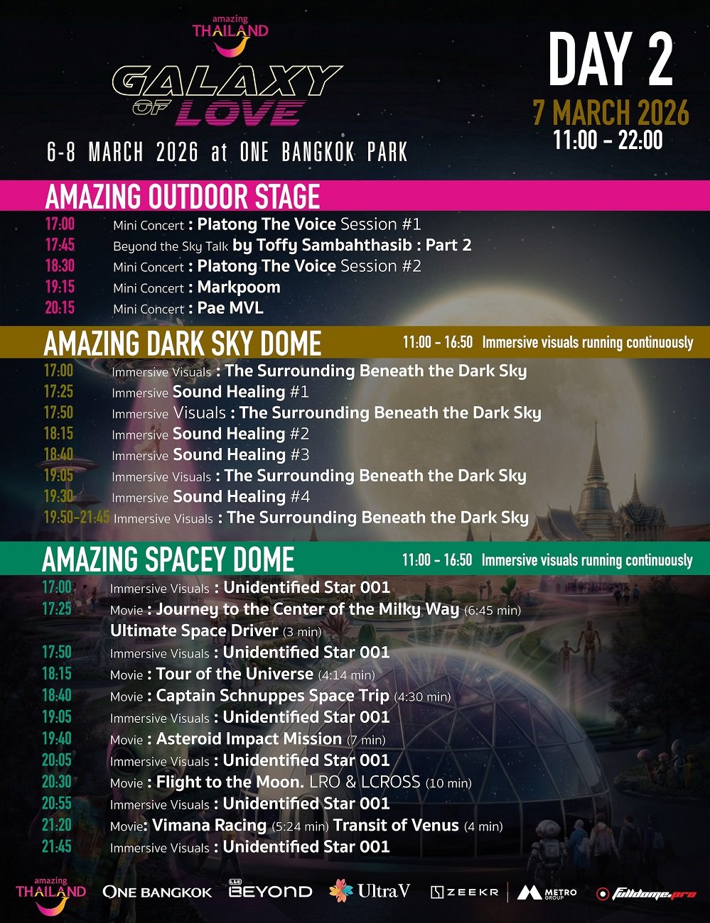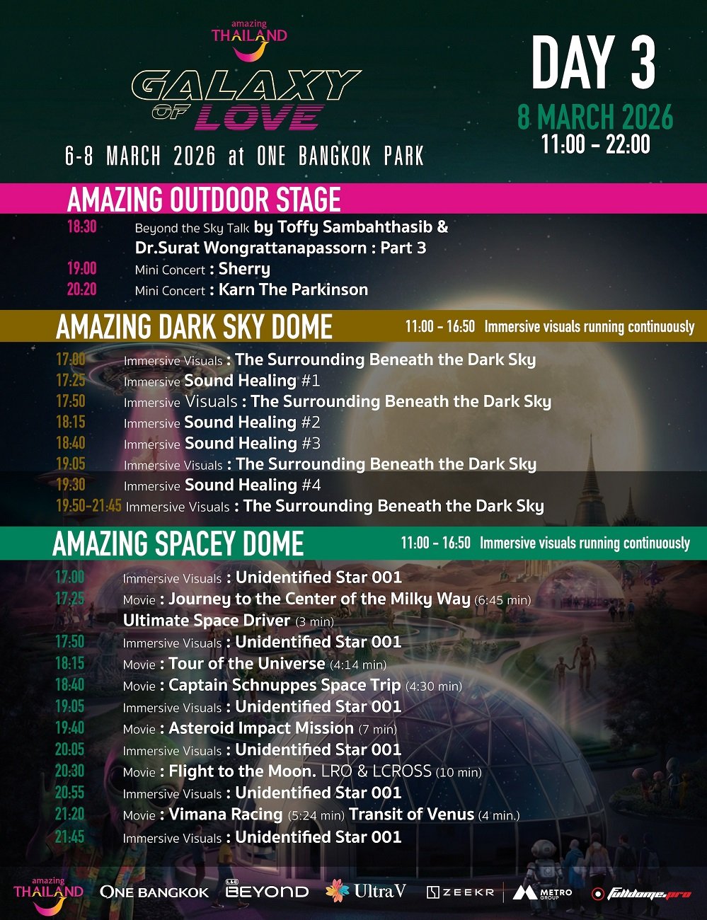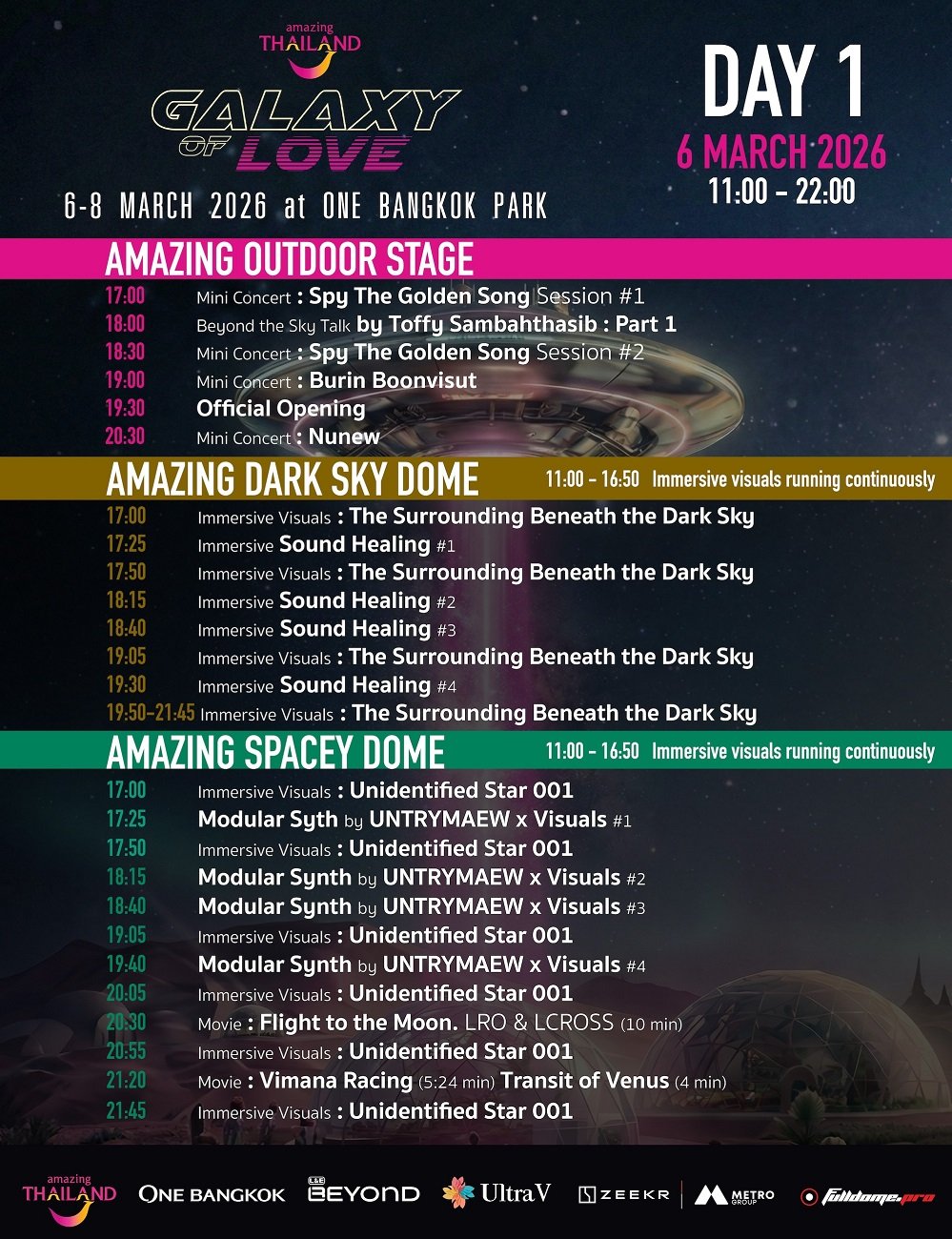 เมื่อจักรวาลไม่ได้อยู่ไกลอย่างที่คิด! การท่องเที่ยวแห่งประเทศไทย (ททท.) ผนึกกำลังกับ One Bangkok, L&E Beyond, Ultra V และ ZEEKR Metro Group เตรียมเปิดประสบการณ์ท่องเที่ยวรูปแบบใหม่ ครั้งแรกในประเทศไทย ภายใต้มหกรรมศิลปะ ดนตรี เทคโนโลยี และ Immersive Experience 360° ที่งาน “Amazing Thailand Galaxy of Love 2026” ระหว่างวันที่ 6–8 มีนาคม 2569One Bangkok Park ในโครงการ One Bangkok ใจกลางกรุงเทพมหานคร เข้าชมฟรีตลอดงาน