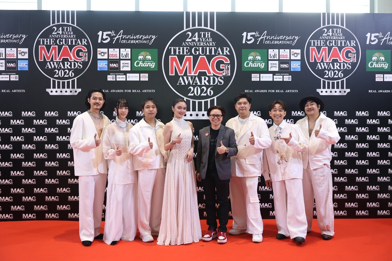 ค่ำคืนของคนดนตรีกลับมามีชีวิตอีกครั้งอย่างสมศักดิ์ศรี กับงานประกาศรางวัลของวงการเพลงไทยที่ถูกจับตามองทุกปีอย่าง THE GUITAR MAG AWARDS 2026 : REAL AWARDS FOR REAL ARTISTS เวทีเกียรติยศที่รวมพลังของศิลปิน นักแต่งเพลง โปรดิวเซอร์ และคนทำงานดนตรีทั้งเบื้องหน้าและเบื้องหลังไว้ในค่ำคืนเดียว ปีนี้จัดขึ้นอย่างยิ่งใหญ่เมื่อวันที่ 10 มีนาคม 2569 ณ One Bangkok Forum ท่ามกลางบรรยากาศที่เต็มไปด้วยเสียงดนตรี ความภูมิใจ และการรวมตัวของคนในวงการครั้งสำคัญของปี ที่พิเศษไปกว่านั้น เวทีในปีนี้ยังถือเป็นอีกหนึ่งหมุดหมายสำคัญ เพราะนอกจากจะเป็นการกลับมาของงานประกาศรางวัลที่ยืนหยัดเพื่อคนดนตรีอย่างแท้จริงแล้ว ยังเป็นการเฉลิมฉลองครบรอบ 15 ปีของเวที THE GUITAR MAG AWARDS พร้อมร่วมฉลองครบรอบปีที่ 24 ของนิตยสาร THE GUITAR MAG สื่อดนตรีที่อยู่เคียงข้างวงการเพลงไทยมาอย่างยาวนาน