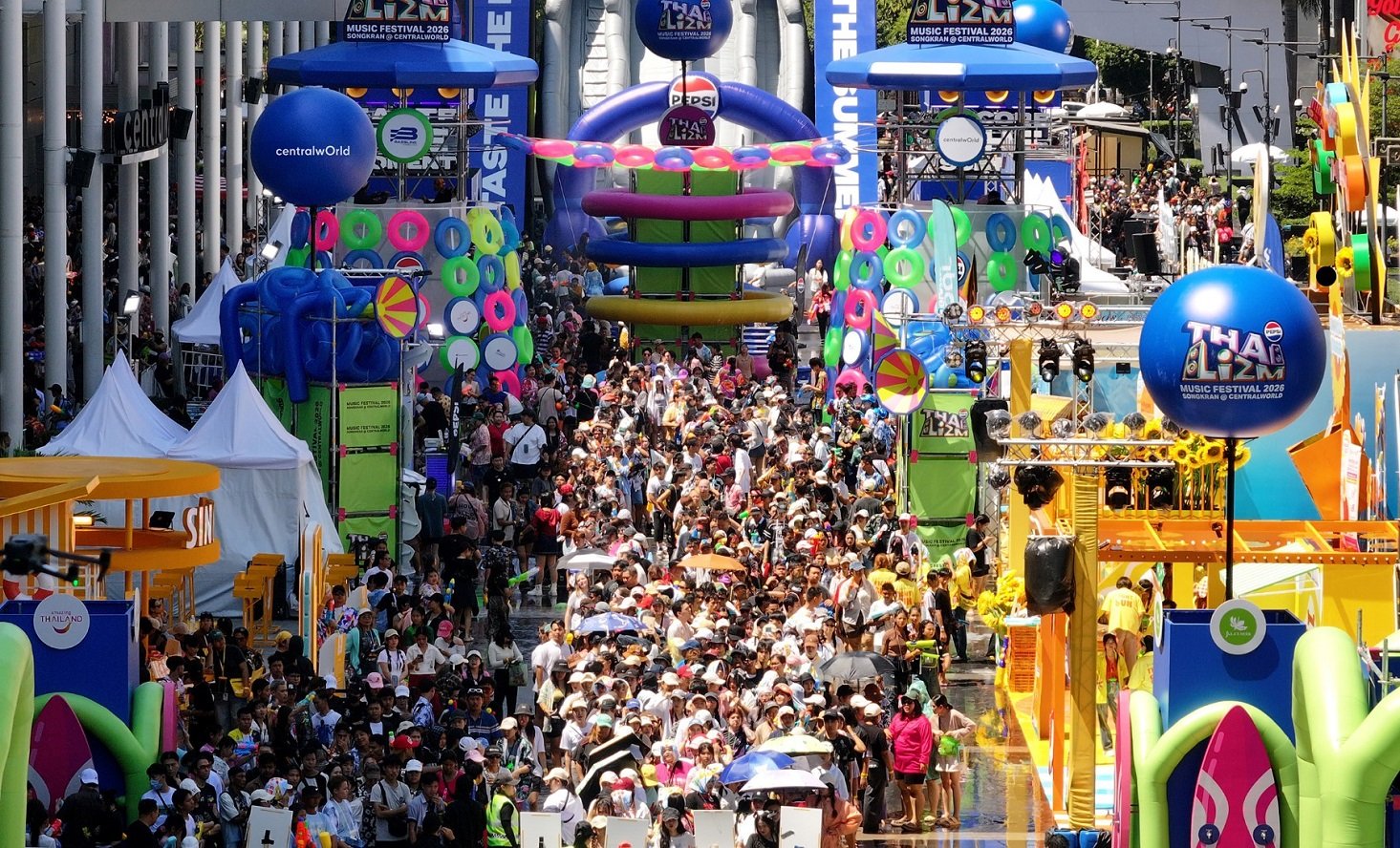 เซ็นทรัลเวิลด์ ผนึกกำลัง บริษัท เบสไลน์ เอ็นเตอร์เทนเมนต์ บริษัทในเครือของ PlanB Media จับมือการท่องเที่ยวแห่งประเทศไทย และบริษัทชั้นนำอื่นๆ จัดเต็มความสนุก กับเทศกาลสงกรานต์สุดยิ่งใหญ่ 'PEPSI Presents THAI LIZM 2026' เนรมิตหน้าลานเซ็นทรัลเวิลด์ให้เป็น Summer Beach Club PEPSI Presents THAI LIZM 2026 สงกรานต์ยกหาดสาดคลื่นปาร์ตี้ ความมันส์แบบใหม่ใจกลางกรุงเทพที่จะทำให้คุณ “เปียก แบบ ป๊อปๆ” โดยในวันที่ 13 เม.ย. พบกองทัพศิลปินที่จะมาร่วมสร้างความมันส์ตลอดวันถึง 4 ทุ่ม ได้แก่ WAR WANARAT, THX, BNK48, F.HERO, ลำไย ไทองคำ, GUNNER, YOUNGGU, DIAMOND, BIGSLP, DJ SURABOON และเพิ่มดีกรีความตื่นเต้นกับ PEPSI Giant Slider ซ่าไม่จบ สไลเดอร์ขนาดยักษ์สูงกว่า 12 เมตร ใจกลางเมือง ที่ชวนทุกคนมาสไลด์ มาสาด และเต้นให้สุดในเทศกาลสงกรานต์ที่มันส์ที่สุดของปี