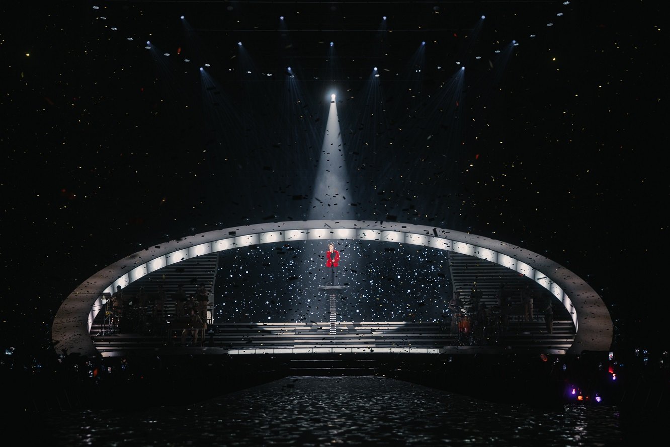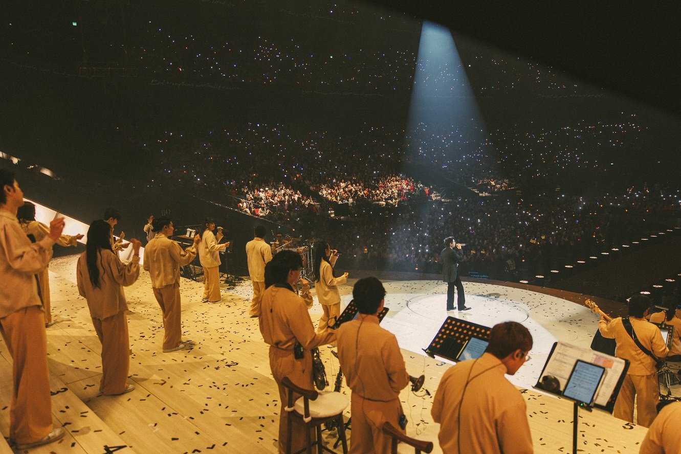 จากนั้น บิวกิ้น นำพาทุกคนเข้าสู่ช่วงสุดพิเศษ กับโชว์ที่ผ่านการเรียบเรียงดนตรีใหม่และเสียงบรรเลงจากวงเครื่องสายที่ช่วยขยายความรู้สึกของทุกบทเพลงให้ชัดขึ้น เริ่มจาก ‘การเดินทางที่สวยงาม (A Beautiful Ride)’ เข้าสู่โมเมนต์ที่สะกดคนดูด้วยเพลง ‘หยงหย่วน 永远 (Ever-Forever)’ นำเนื้อร้องจากเพลง ‘สวยงามเสมอ’ มาถ่ายทอดใหม่ในเวอร์ชันภาษาจีนที่ลึกซึ้งกินใจ และต่อเนื่องความอบอุ่นด้วย ‘You’re My Everything’ เพลงที่เป็นจุดเริ่มต้นสำคัญในเส้นทางศิลปิน ก่อนจะค่อยๆ ดึงอารมณ์ให้ดำดิ่งไปกับเพลง ‘หลอกกันทั้งนั้น’ และ ‘หรูเหอ 如何 (Skyline)’ เพลงสุดซึ้งที่ทุกคนชื่นชอบ พร้อมส่งต่อความประทับใจในเพลง ‘ชอบตัวเองตอนอยู่กับเธอ (I Like Us)’ มาถึงพาร์ตสุดสร้างสีสันกับ Broadway Musical และ Jazz Big Band ที่บิวกิ้นถ่ายทอดออกมาได้อย่างมีเสน่ห์และคลาสสิก พร้อมเชื่อมเข้าสู่เพลงระดับตำนานอย่าง ‘I Just Called To Say I Love You’ และ ‘My Way’ เติมเต็มค่ำคืนนี้ให้ยิ่งอบอุ่นขึ้นไปอีกขั้น